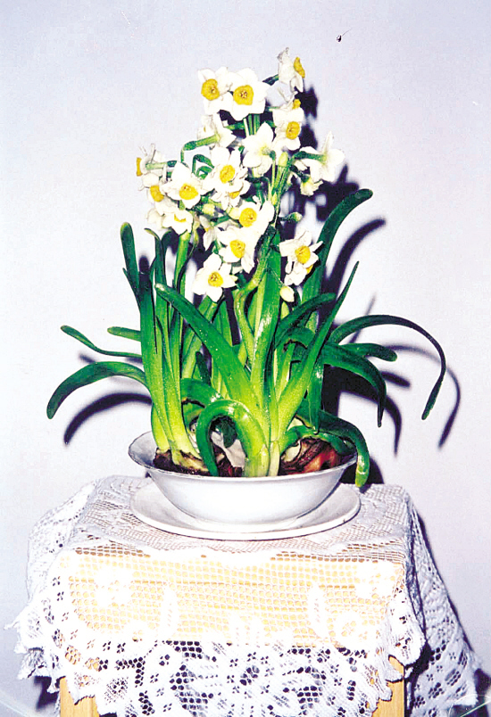 作者栽养的水仙叶翠花白、亭亭玉立、芳香馥郁。