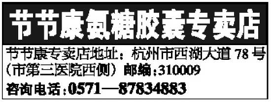 节节康专卖店地址:杭州市西湖大道78号(市第三医院西侧) 邮编:310009