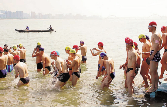 7月22日,横渡钱塘江活动如期举行,近500名游泳健儿过了一把瘾。这次横渡活动的选手年龄最大的70岁。里 尔