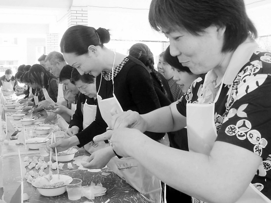 在近日举办的邻居节里,台州黄岩区东城街道九峰社区开展“奥运拉近你我他、文明新风进社区”包饺子比赛,30多位老人参赛。卢荣秋老人5分钟包了26个饺子,获得第一名。 卢启鑫 摄