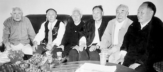 103师老战士合影。左起:沈鸿毅、何鹏、孙景海、魏继善、徐传翎、杨守来