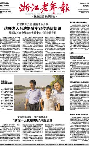诸暨老人吕迪新骑车宣传消防知识