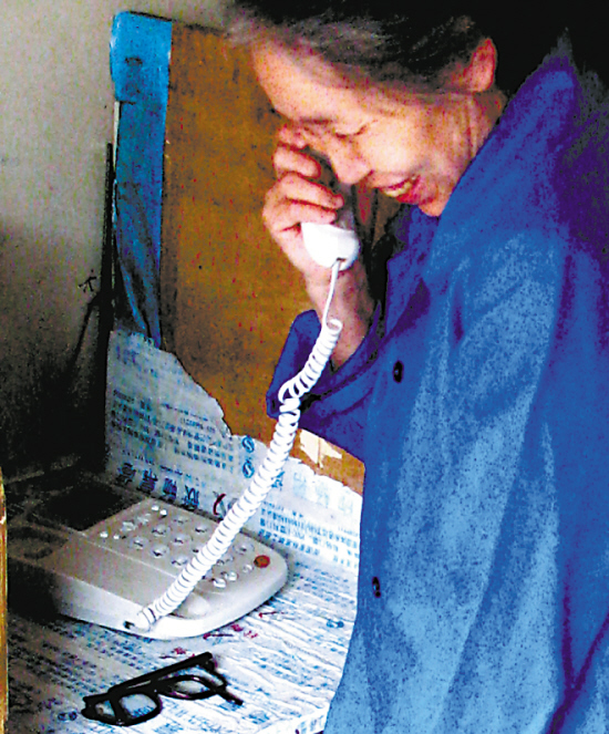 接到四川老家女儿的电话,汤大妈开心地笑了。