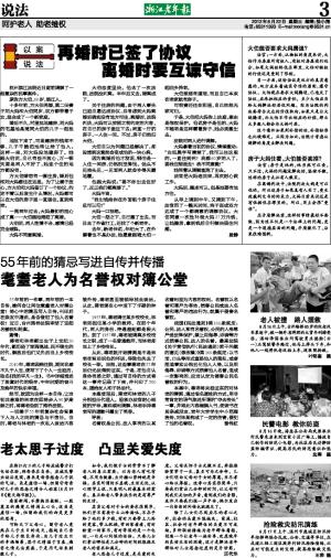 耄耋老人为名誉权对簿公堂