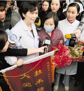 4月19日,在浙大一院经过将近一个月的治疗,感染H7N9禽流感的贾女士(湖州人,前排右二)各项指标恢复正常,康复出院。这是浙江首例H7N9禽流感出院病人。
