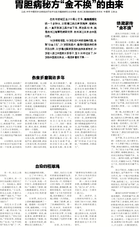 口述:中华中医药学会传统诊疗技术与验方整理研究分会常委 杭州江南胃胆病研究所所长 中医师 王来法