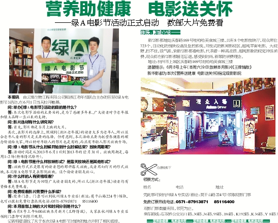 答:本次电影节活动的主要目的,是为了感谢多年来,广大读者对于老年报和绿A品牌一直以来的支持。