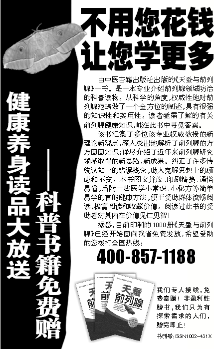 据悉,目前印制的1000册《天蚕与前列腺》已经开始面向我省免费发放,希望受助的您拨打全国热线: