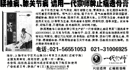 腰椎病、膝关节病 请用一代宗师牌止痛透骨膏