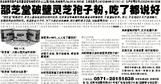 “邵芝堂”温馨提示:灵芝上直接收起来的粉叫毛粉,毛粉里含有霉菌和黄曲霉素等有害物质,不能直接食用。所以,不合格的三无产品危害大,长期食用会伤肝伤肾。食品安全大于天,为了大家的生命健康,我们誓死捍卫正品,杜绝假冒伪劣!来自于“灵芝之乡”、“西山药库”的“邵芝堂破壁灵芝孢子粉”在杭州亮相后,引发无数消费者争相购买,迅速掀起抢购热潮!不仅是它的品质让人惊喜称赞,更关键的是它的价格让人意想不到!“以前吃的都是十几块钱1克,现在只要1块多1克,实在是太超值、太划算了”,到处传得沸沸扬扬……!在这短短的时间里,“邵芝堂”的忠实用户便已经突破8000多人,人人吃了都拍手叫好!