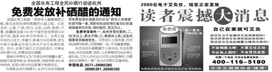 本次活动补硒醋属于公益活动,完全免费发放,所涉及税费、物流、人员等费用均由长寿工程补贴,工作人员无论以何名义收取费用,均需承担法律责任!请广告大市民帮忙监督举报。