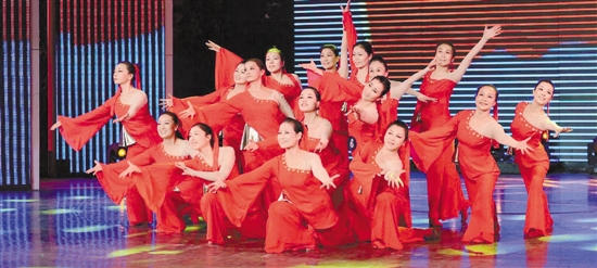 杭州武林街道新世纪艺术团表演舞蹈《红旗颂》 通讯员 郭颂刚 摄