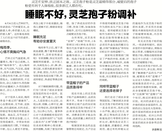 对于睡眠障碍问题,我们专门咨询了胡庆余堂国医馆里的知名中医师。医师表示,夏气通心,五行属火,人很容易心火过旺,出现头疼、烦躁、心神不定、睡眠不佳等症状,因而夏季养生,当以养心为先。夏季养心对于改善睡眠有很好的作用,这里所说的“心”包括心脏在内“主神”的整个神经系统和精神心理因素。医师提醒,失眠了要及时调理。除了养成良好的作息习惯、饮食习惯,加强身体锻炼外,还可以选择性地吃点破壁灵芝孢子粉。