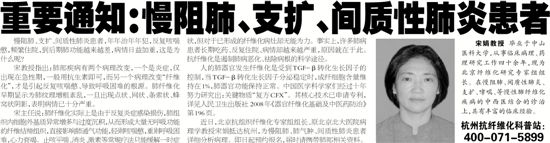近日,北京抗组织纤维化专家组组长、原北京北大医院病理学教授宋娟抵达杭州,为慢阻肺、肺气肿、间质性肺炎患者详细分析病理。即日起预约报名,届时请携带肺部相关资料。