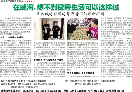 我们居住在威海香庭海岸,是一个旅游度假楼盘。年年夏天,来自全国各地的业主就会如候鸟一般飞来此,享受他们舒适惬意的避暑生活。避暑团的住的房间,就是部分业主回租给物业的。住在这样的地方,虽然很多地方不及宾馆舒服,但是最大的好处是和许多在此养老的老年朋友生活在一起,那种热气腾腾的生活,会让你感到年轻、感到活力、感到新鲜而有趣。
