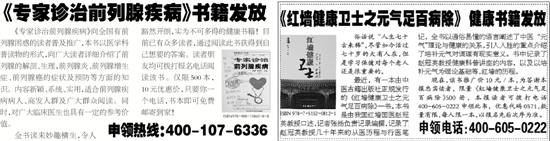 全书读来妙趣横生,令人豁然开朗,实为不可多得的健康书籍!目前已有众多读者,通过阅读此书获得到自己想要的答案。读者朋友均可拨打报名电话阅读该书。仅限500本, 10元优惠价,只要你一个电话,书本即可免费邮寄到家!
