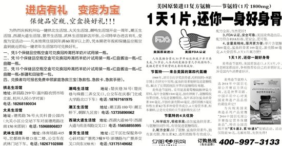 为热烈庆祝杭州仙一健拱北生活馆、大关生活馆、潮鸣生活馆开业一周年,潮王生活馆、西湖大道生活馆、景芳生活馆、武林生活馆新店开张,公司特举办进店有礼、变废为宝活动——凡本地常住居民年满60周岁以上的,凭本期老年报和保健品空瓶空盒到就近的仙一健老年生活馆均可兑换好礼。