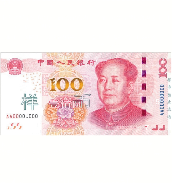 取消了票面左下角的光变油墨面额数字,胶印对印图案由古钱币图案改为面额数字“100”,并由票面左侧中间位置调整至左下角