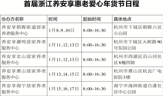| 养安享朝晖街道居家养老服务中心 | 1月8、9、10日 | 8:00-16:30 | 杭州市下城区朝晖六区小公园 |