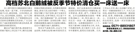 自上期刊登苏北鹅绒被特价清仓处理,电话一直不断。许多读者收到被子以后,感觉很值。又多次购买,送子女,送兄弟姐妹,送朋友。由于订购的读者陆续增多,为了照顾那些没有买到和还需要购买的读者,厂方又组织了100床继续按特价清仓供读者,需要的读者抓紧时间。