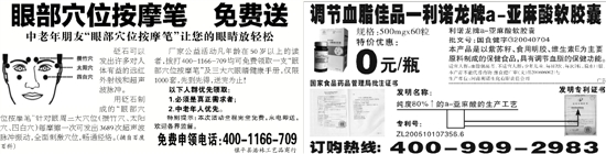 厂家公益活动凡年龄在50岁以上的读者,拨打400-1166-709均可免费领取一支“眼部穴位按摩笔”及三大穴眼睛健康手册,仅限1000套,先到先得,送完为止!