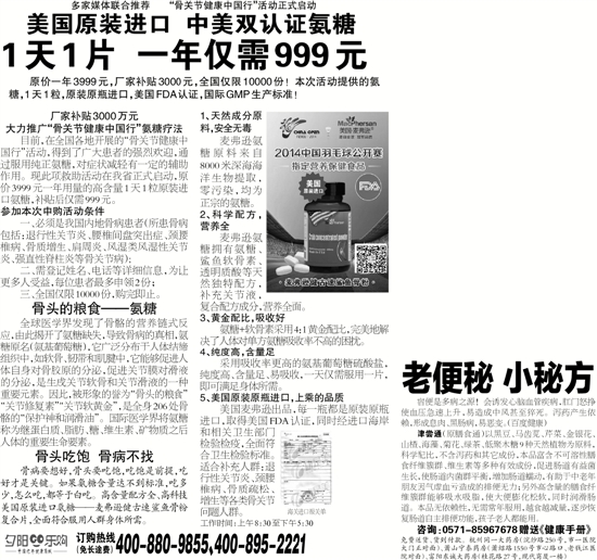 原价一年3999元,厂家补贴3000元,全国仅限10000份!本次活动提供的氨糖,1天1粒,原装原瓶进口,美国FDA认证,国际GMP生产标准!