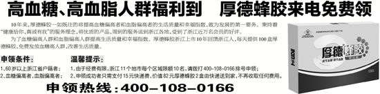 高血糖、高血脂人群福利到 厚德蜂胶来电免费领