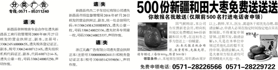 浙江天鑫广告有限公司遗失营业执照正本(注册号330000000026813)和税务登记证正本(税号330105142939056),声明作废。