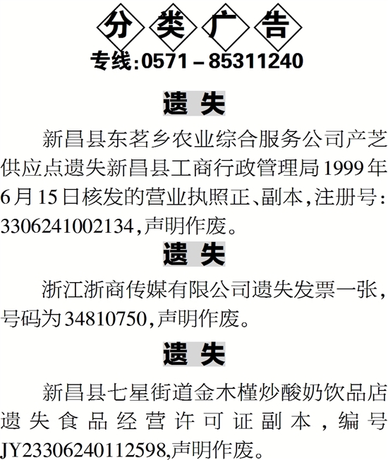 新昌县东茗乡农业综合服务公司产芝供应点遗失新昌县工商行政管理局1999年6月15日核发的营业执照正、副本,注册号:3306241002134,声明作废。
