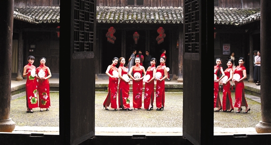 2月19日,旗袍爱好者在仙居县皤滩古街走秀。当日,仙居县华服协会旗袍队在皤滩千年古街展现旗袍魅力,演绎了我国传统艺术与旗袍文化的融合,给市民带来一场典雅古朴的视觉享受。 王华斌 摄