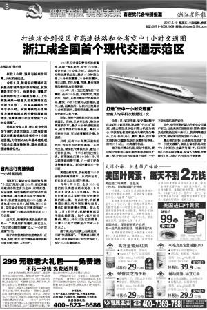 打造省会到设区市高速铁路和全省空中1小时交通圈浙江成全国首个现代交通示范区