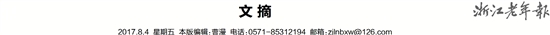 2017.8.4 星期五 本版编辑:曹漫 电话:0571-85312194 邮箱:zjlnbxw@126.com