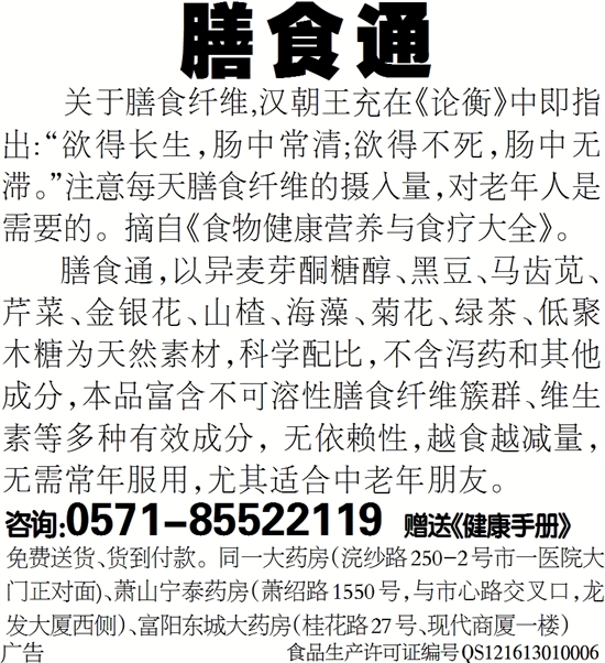 关于膳食纤维,汉朝王充在《论衡》中即指出:“欲得长生,肠中常清;欲得不死,肠中无滞。”注意每天膳食纤维的摄入量,对老年人是需要的。摘自《食物健康营养与食疗大全》。