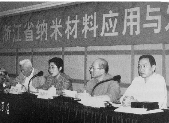 项浙学(右二)于2001年参加浙江省纳米材料应用及产业发展对策研讨会。