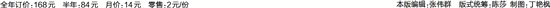 全年订价:168元 半年:84元 月价:14元 零售:2元/份