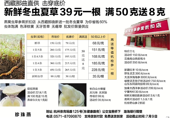 电话:0571-87090870 支持货到付款 免费送货到家 活动截止时间:7月9日