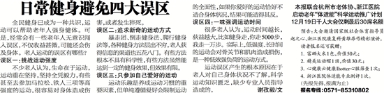 运动误区产生的根本原因在于老人对自己身体状况不了解,科学运动知识匮乏,缺少专业人员指导造成的。 谢孜毅/文