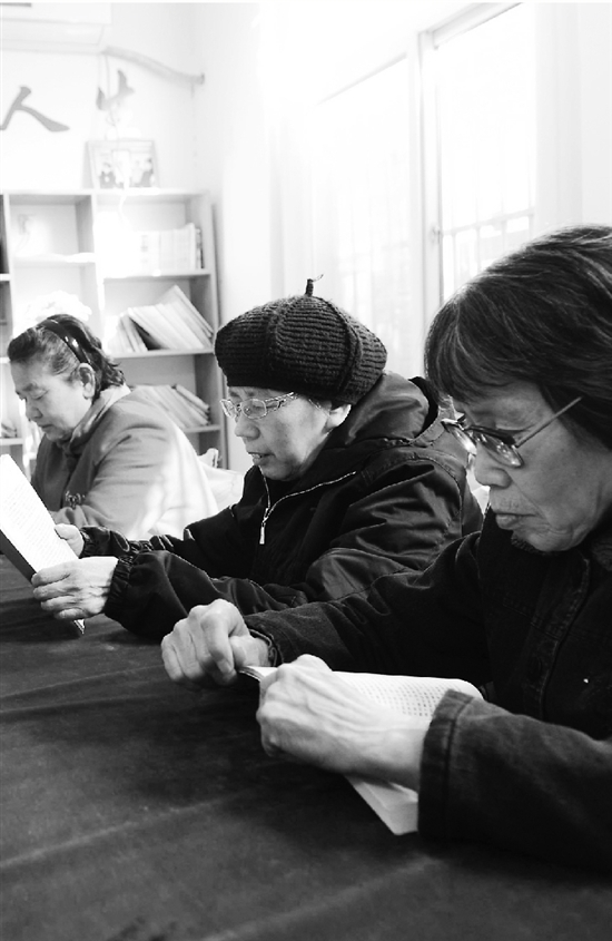 资料图:3月13日,在河北省沧州市运河区解放西路社区养老服务站,老人们在看书。 据新华社