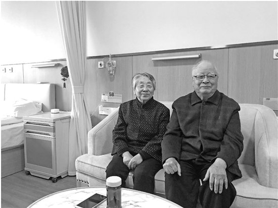 冯尚祥(右)和老伴刘雅文在朗颐护理院。