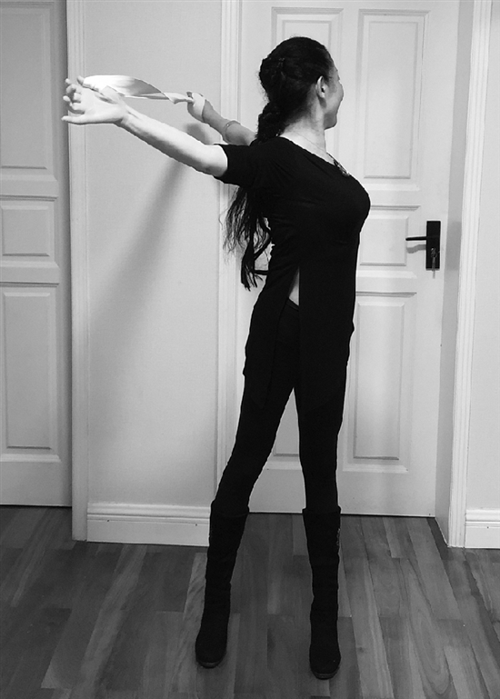 两脚分开与肩同宽,脚尖朝前,身体往左转,可增强腰部肌肉力量和灵活性。
