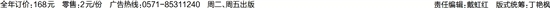 全年订价:168元 零售:2元/份 广告热线:0571-85311240 周二、周五出版
