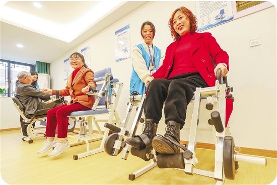 老年人进行康复训练。王树成 摄