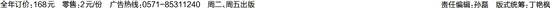 全年订价:168元 零售:2元/份 广告热线:0571-85311240 周二、周五出版