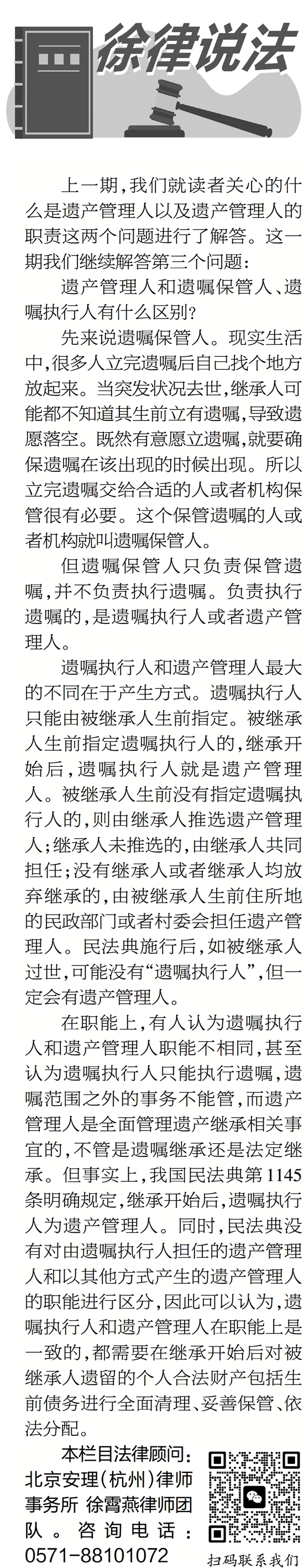 本栏目法律顾问:北京安理(杭州)律师事务所 徐霄燕律师团队。咨询电话:0571-88101072