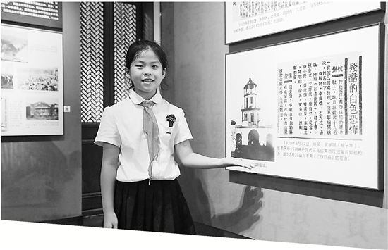 小营街道和辖区学校共建“红领巾讲解员”队伍,鼓励孩子从“听故事”转为“讲故事”。图为小女生鲁泇妤为参观者讲解。