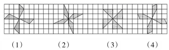 在方格纸中有四个图形如图(1)、(2)、(3)、(4),其中面积相等的两个图形是?