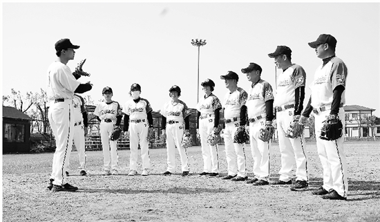 平湖市徐家埭村老年学堂老年棒球班。