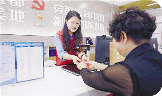 金都美地社区工作人员为老年居民开通“爱心卡”。