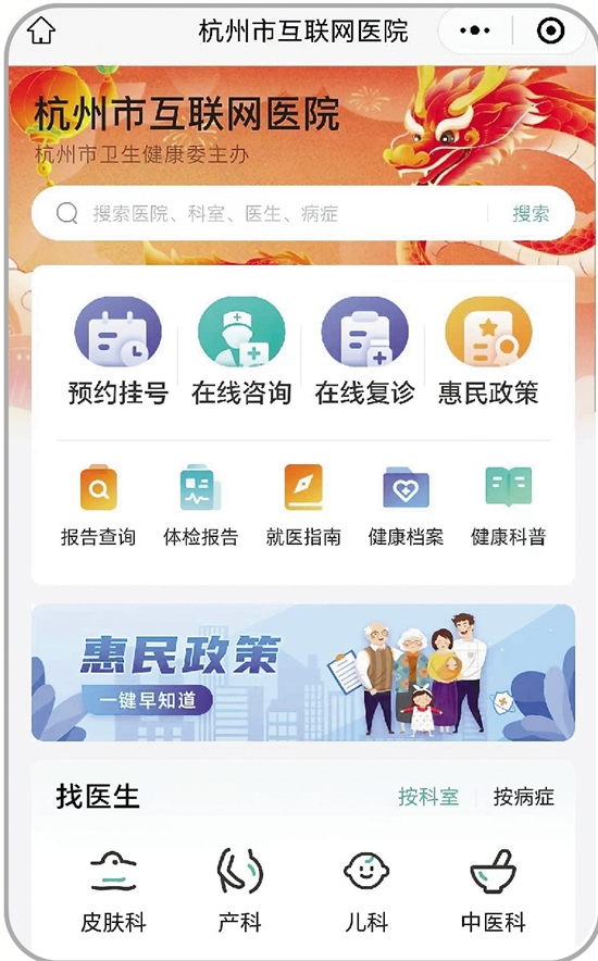 杭州市互联网医院主界面。