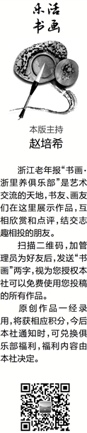 浙江老年报“书画·浙里养俱乐部”是艺术交流的天地,书友、画友们在这里展示作品,互相欣赏和点评,结交志趣相投的朋友。